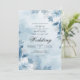 Ethereal blue washes create a dreamy backdrop, framing delicate floral and foliage accents. This design evokes a sense of serene romance and natural beauty.
