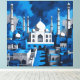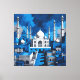 Transform your bedroom or living space with this striking blue architectural wall art inspired by the timeless beauty of the blue sky Taj Mahal. This stunning canvas print captures an iconic landmark in rich shades of cobalt, navy, and grey, creating a mesmerizing blend of history and modern artistry.