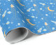 A sleepy yellow moon in a star-studded sky beams down on a rocket soaring through the cosmos.
