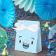 Cute och roligt Blue Smiling Kawaii Ansikte Gift Box. Underbara för barn och vuxnor.