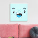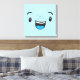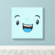 Cute och roligt Blue Smiling Kawaii Ansikte Wrapped Canvas. Underbara för barn och vuxnor.