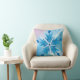 Den vackra snöflingor dekorativ kudde har en blå och lavender med liten nedsmutsad snöflingor framtill med en stor vattenfärgsblå snowflake i mitten, baksidan har en smutsig lavender, rosa och blå bakgrund med en mängd söt blå vattenfärgssnöflingor i olika former och storlekar!