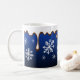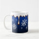 Hett choklad drunknar i den här festliga, blå snöflingan mugg. Formgivningarna kommer från originalteckningen.