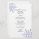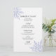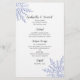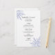 Anpassa den festliga Blue Snöflingor på Vita vinterbröllopsmenyn med de uppgifter om måltiden som du kommer att på lunchen i december, januari eller februari möhippa, vid repetitionsmiddagen eller vid mottagandet i giftermål genom att lägga till sallad eller första kursen, ingångskurs eller andra kurs och dessert eller tredje kurs. Anpassa den med namnen av brudgummen, platsen och händelsemedatum. Den här anpassningsbarna under vintern har bröllop-menyn på underlandstemat i elegant ett intensivt blått snöflingor som fäster hörnen med vit bakgrund.