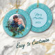 På framsidan av denna Helgdag är ditt eget foto inneslutet i ett blått och vitt snöflinga ram som är dekorerat med en söt holly och evergreen bough. Röda bär och gräs-koner accentuerar huggen och gräs. Baksidan av dekorationen har samma bakgrund och cirkel med anpassningsbarnas text i blått. En underbar familjegåva till nygifta, nyfödd bebis, eller till minne av detta speciella evenemang under det gångna året.