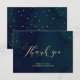 Ett "tack"-kort för kalligrafi i bröllop har en mörk blått vattenfärgsbakgrund med texten i guld. Den här eleganten "tack"-kortet kan användas för alla vinterbröllop. Om du har någon speciell förfrågan kan du kontakta mig om du vill ha en tjänst för anpassning.