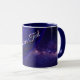 Personalize this blue space donuts geometric coffee mug. Give as a gift or add to your kitchen hardware. Additional mug colors are available.