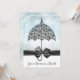 Blå Sprinkle Baby Shower Black Snöre Parbrella - Baby Sprinkle-inbjudan - en vacker svart snöre-parasol med svart satin-band och båge framför en ljusblå bakgrund OBS: det finns inget riktigt band eller båge på detta kort, det är konstnärligt designat att se äkta ut