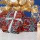 Blue Spruce Red Berries Guld God jul Presentpapper