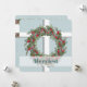 A window to the outside winter snowfall. This card has the design of a window with a Christmas wreath hanging in front. The theme continues on the back, where your messahe is in the center. I love the soft color of blue-green, along with the “window look”, and the gentle snowfall. Blessings!