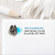 Den lämnat sidan av dessa returetiketter har en ljusblå vattenfärg stänk med porträtt på en vacker Keeshond-hund över den. Anpassningsbarnas text är i linje med blått och svart vid högerna av bilden.