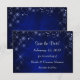 Det här är enkelt, men dramatiskt och elegant bröllop Spara datumkortet, med silver stjärngalaxi som lyser mot en djup övertoningsblå bakgrund. Det finns gott om utrymme för din anpassade text, även i silver grått. Om du vill ändra teckensnitt, storleka text, plats eller färg i texten, kan du ändra använda Anpassa den. Baksidan av inbjudan är samma blå stjärnbild.