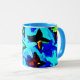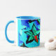 En meriserande målning av en blå stjärnmörk himlar, med två blå stjärnor och ett halvmånsfärande blå himmel. Köp nu!
