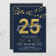Elegant 25-årsjubileumsfestinbjudan med strängar av lampor och "25" i falskt guld med "år tillsammans" i vitt mot en mörkblå bakgrund. Kortet har en matchande mönsterbakside. Kolla in matchande föremål som klistermärken och frimärken här https://www.zazzle.com/collections/strings_of_lights_faux_gold_celebration_collection-119311942951401241?rf=238364477188679314