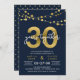 Elegant 30-årsjubileumsinbjudan med strängar av lampor och "30" i falskt guld med "år tillsammans" i vitt mot en mörkblå bakgrund. Kortet har en matchande mönsterbakside. Kolla in matchande föremål som klistermärken och frimärken här https://www.zazzle.com/collections/strings_of_lights_faux_gold_celebration_collection-119311942951401241?rf=238364477188679314