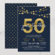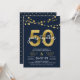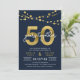 Elegant 50-årsjubileumsinbjudan med strängar av lampor och "50" i falskt guld med "år tillsammans" i vitt mot en mörkblå bakgrund. Kortet har en matchande mönstrad baksida. Kolla in matchande artiklar som klistermärken och frimärken här https://www.zazzle.com/collections/strings_of_lights_faux_gold_celebration_collection-119311942951401241?rf=238364477188679314