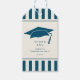 Make your graduation party favors stand out with our chic and customizable graduation favor tags! These stylish tags feature a sleek graduation cap and elegant blue stripes on a warm cream background. Add a personal touch by including the graduate's name and date to make it truly special.