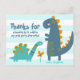"Tack för att du smet förbi". En roligt, visuell och lekfull bild av en söt, fet, kawaii, turkos blå brontosaurus, marin blå t-rex och roligt, handskriven typografi över en ljusblå och vit strimlad bakgrund ger dig en uppskattning. En coola av typen "raster" och din anpassningsbar är på baksidan. Säg tack till dina gäster med dessa förträffliga, moderna, enkla anpassningsbar för dinosaurier och/eller daghem tack för vykort. Anpassa till namn på framsidan. Skriv en anteckning på anpassningsbarna på baksidan eller lämna tom för ditt handskrivna meddelande. Lägg även till returadressen. Matchande inbjudan, banderoller, varv, klistermärken och andra varor finns också tillgängliga i denna speciell och roligt samling. Garanterade att din korrespondens fick en extra snyggt! Skriv bara i namn på framsidan, lägg till en personlig och returadress på baksidan, och du kan enkelt anpassa det här dinosaurietacket till studenten. Var snäll och meddela mig med eventuella frågor eller förfrågningar.