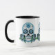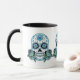 Dia de los Muertos sockerskalle i blått med vackra blommor och hjärtan.