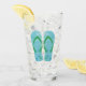Har en blå flip-flop-design för stranden. Underbar för ett strandköks eller pub.