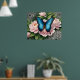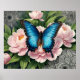 Blue Swallowtail Butterfly With Peonies Floral Art Poster