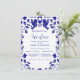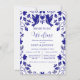 "Inbjudan dina nära till ett sjudande firande med våra mexikanska tema Talavera Rehearsal Dinner-inbjudningar. De här inbjudningarna inspireras av Mexikos ikoniska Talavera-potteri och visar på en komplicerad, handmålad blommigt och geometrisk mönster i rik, fetstilt färg. Konstruktionen fångar det mexikanska konstets innersta väsen och ger ett festligt och kulturellt värde till era festligheter före bröllop.