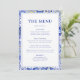Transport dina gäster i bröllop till Mexikos hjärta med vår Blue Talavera-temed bröllop-meny. Den här eleganten och den moderna utformningen, inspirerad av den spanska-mexikanska kulturens skönhet, tillför en aning exotisk charm till ditt målbröllop firande. Anpassa din meny så att den innehåller de löstagbara diskar som kommer att glädja dina nära och kära, och ge bröllop de livfulla nyanser och kulturella rikedomar som en spansk fiesta har. Med den här snyggten och den unika menyn kommer firande att bli en fästmö att minnas och kombinera elegans och tradition i ett beundransvärt paket.