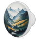 Den här fängslande keramiska knoppen vågrät presenter är en andlig bergscen, mästerligt utgiven i blåblå nyans och solbränd som framkallar en känsla av lugn och ängslan. I centrum av sammansättningen innebär en kristallklar ström ett glatt nedströms berget, dess vatten som återspeglar himmel-nyansen och skapar en harmonisk blandning av färg som utlöser lugn. Bergsområdena, som är skisserade med olika solskal, stiga upp med stor majoritet mot bakgrunden, deras toppar som berör himlar, vilket antyder både deras storhet och naturens tidlösa skönhet.