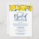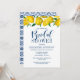 En vacker citron inbjudningskort för möhippan med citroner och blå och vit italiensk Medelhavsbricka. Anpassa den till din möhippa. Designad för dig genom svartberget Boulevard.