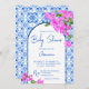 Blue Tiles och Bougainvillea elegant Baby Shower Inbjudningar