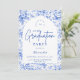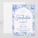 An elegant graduation celebration design featuring a delicate blue toile floral border inspired by classic European porcelain and vintage botanical prints. The intricate florals frame a clean arched center panel, creating a refined and timeless composition that highlights the graduate’s name and event details beautifully. Soft blue tones against a crisp ivory background give the design a sophisticated yet celebratory feel. Perfect for a stylish graduation gathering with a classic, romantic aesthetic.