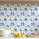 Blue Toile Palm Trees Lemons Pattern Kakelplatta