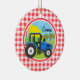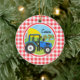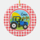 Blue Tractor; Red and White Gingham Julgransprydnad Keramik