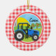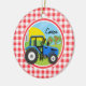 Coola, söt blå jordbrukstraktor på söt gingham; röd, rosa och vit kontrollerad land mönster. Anpassa den här temaprodukten för ungdom till namn.