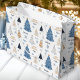 Den moderna julklappen med stor gåva med blått och guld och Julgranar och namn. Anpassa texten enkelt. - Kate Eden Art