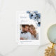 Blue transparent flowers on a custom photo with a left aligned thank you text.