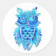 Ett dekorativt blått färgad av lite uggla med massor av inslag och mönster i en primitiv stamtatuering av stil.