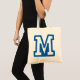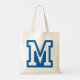 Bär med dina essentialer i stil med den här variationen brev M till väskan. Den här väskan har ett fet blått monogram i ett klassiskt idrottsteckensnitt och är perfekt för skolärenden, gymmet eller vardagsärenden. En underbar gåva till studenter, lärare eller fläkt i mode som inspirerats av högskoleutbildningar, det här kombinerar praktisk använda med djärv personlig.
