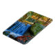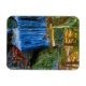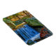 Blå vatten vår och rött löv i autoskog, målareffekt