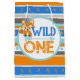 Blue Vild One Woodland Fox 1st Birthday Gift Bag - Blue, Orange, Brown, Forest Animals Clipart by Pixel Papper Prag