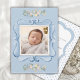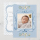 Sweet vintage blue watercolor frame with elegant fonts with your new baby photo. Add all baby stats on reverse side with blue and white polkadots and whimsical frame. So cute for that boy or girl. 100% customer satisfaction with “Zazzle”