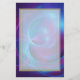 En surrealistisk rektalbild med cirklar och snurrar färgadens lila, violett, blå och rosa som skapar en psykodelisk abstrakt design. Har en kosmisk rymden-känsla med ett slätt struktur, glödande färg, djupa skuggor och ljusa ljusa högdagrar. Centralt skrivområde innehåller en halvgenomskinlig rektangel med elegant guld dubbla gräns.