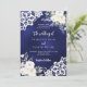 För en elegant och ett romantiskt bröllop. En marin blå, ojämn färgad med vit blommigt, ro och vit snöre. Anpassa och lägg till namn och information.