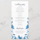 Blue Watercolor blommigt Chinoiserie Bröllopsprogr Meny