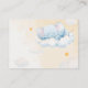 This charming display shower card was designed to match a soft watercolor baby shower theme. A sweet little elephant swinging on a cloud among golden stars creates a dreamy nursery scene while politely inviting guests to bring their gifts unwrapped. A lovely way to keep the celebration relaxed and joyful.