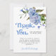 Blåtematets babydusch är ett tack för att du har ett mallkort med vattenfärgad illustration av blå blommigt med grön energi.