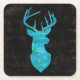 Blue Watercolor Hjort Silhouette Underlägg Papper Kvadrat