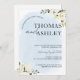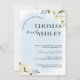Blue Watercolor Vit ros Elegant bröllop Inbjudningar