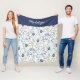 Blue Watercolor Wildflower Monogram Name Fleecefilt