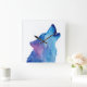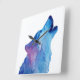 Blue watercolor wolf howling fyrkantig klocka